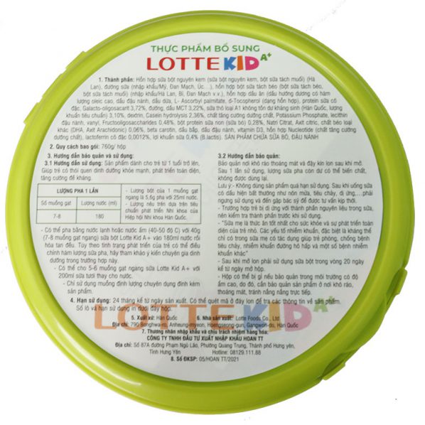 - Về tên gọi sản phẩm: Kid Power A+ (cũ) thành Lotte Kid A+ (mới)