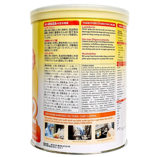 Sữa Morinaga số 2 được đặc chế phù hợp nhất cho trẻ từ 6 đến 36 tháng tuổi với công thức tiên tiến, đảm bảo cân bằng các chất dinh dưỡng quan trọng nhất. Sản phẩm có hương vị thơm ngon, nhạt, mát dễ uống được nhập khẩu nguyên lon từ Nhật và phân phối độc quyền bởi Công ty TNHH Lê Mây. Tất cả các sản phẩm của Moringa đều được kiểm tra theo quy trình kép nhằm đảm bảo sản phẩm dinh dưỡng an toàn và đạt chất lượng tốt nhất cho bé yêu.